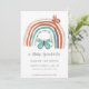 "Einladung zur Dusche des blauen Regenbogens, des blauen Golden Boy." Moderner, einfacher, handgezeichneter Regenbogen mit Sternen, Punkten und Herzen in zeitgenössischen, gedämpften Farben aus staubigen Pastellfarben und Stahlblau, silbergrauem und bernsteinfarbenem Gold. Auf der Rückseite kann die Hintergrundfarbe geändert werden. Kunst von international lizenzierter Künstlerin und Designerin, Audrey Jeanne Roberts, Copyright.