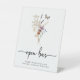 Boho Open Bar Pedestal Sign. Dieses stilvolle und elegante, offene Bar mit herrlichen handbemalten Aquarellfarben-Wildblumen, die als hübsches Bouquet auf weißem Hintergrund angeordnet sind. Finden Sie passende Artikel in der Brautparty-Sammlung von White Boho Wildblume.