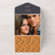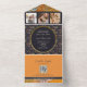 Eine moderne und böhmische Hochzeitseinladung, die Eleganz und Charme ausstrahlt und eine beeindruckende Mischung aus Orange und Schwarz bietet. Personalisieren Sie dieses Design mit vier individuellen Fotos des Ehepaares, um Ihre Liebe Story im Stil. Fügen Sie Ihre Website und QR-Code für einfache UAWG und zusätzliche Details ein. Perfekt für eine zeitgenössische, unvergessliche Feier konzipiert.