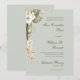 Boho Blattwerk und Orchideen auf eine schlichte und elegante Einladung. Die Karte ist elegant und raffiniert, ruhig Bohemisch. Die Anordnung der tropischen Orchideen mit Blätter aus Palmen und Pampas-Gras-Stielen hat weiche Farbtöne von blassem Weiß und Bräunung. Ideal für jede Jahreszeit Hochzeit. Umgekehrt ist Salbei Schatten.