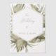 Wasserfarbene Blätter aus Palmen bilden einen achteckigen Rahmen. Der Rahmen mit subtilem, grünen Blattwerk enthält die Ankündigung einer Hochzeit mit personalisierten, individuellen Namen. Ideal für mehr als ein Foto. Einladung gezeigt ist verfügbar unter: https://www.zazzle.com/z/qz0xgnsb?rf=238286872371002761 Für Einladungen zu jeder Jahreszeit, die Ihrem boho Design eine extra elegante Touch geben. Das durchsichtige Cover ermöglicht die Haupteinladung bzw. das Foto unter der Oberfläche, durch die glänzend glänzen, und fügt gleichzeitig ein Framework hinzu. Ideal für boho, grün, minimalistisch und modern einladend. Wunderbar für jeder Anlass, zu jeder Jahreszeit.