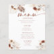 Unser elegantes Hochzeitsmenü ist die perfekte Möglichkeit, Ihren Hochzeitstag für Ihre Gäste anzukündigen. Jede Karte zeichnet sich durch ein feines Blumendesign und eine schöne Typografie in neutralen Farben wie Terrakotta, Beige und Erdtönen aus. Auf hochwertigen Kartons gedruckt, werden sie Ihre Gäste sicher beeindrucken und den Ton für Ihren besonderen Tag Set geben. Meine Hochzeitskollektion im boho-Design, mit Aquarellblumen, Pampas und erdigen Tönen, beinhaltet alles, was Sie brauchen, um Ihren besonderen Tag wirklich unvergesslich zu machen. Sammlung: https://www.zazzle.com/collections/watercolor_boho_pampas_wedding_collection-119346973241911782
