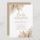 Rustikale Babydusche mit weißem Hintergrund, wasserfarbenen, wüstengetrockneten Blätter, Pampas-Gras und einer eleganten Babydusche, die leicht zu gestalten ist.