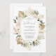 Entdecken Sie das böhmische Thema mit Ihrer Boho Pampas Grass & Beige Blumen Hochzeit Einladung. Umfasst Pampas Gras und tropische Palmen Blätter, grün und getrocknet.