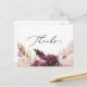 Dieses boho Pampas Gras dank Postkarte ist perfekt für eine Sommerhochzeit. Das Blumenmuster in Aquarellfarben ist mit böhmischen bordeauxroten und rot-rosa Blume mit Spitzen aus neutralem Pampasgras und goldgetrockneten Palmen-Blätter gestaltet. Personalisieren Sie die Rückseite der Postkarte mit Ihren Namen, Ihrer Rücksendeadresse und einer Danksagung. Alternativ können Sie den Bereich Dankeschön Meldungsvorlage leer verlassen werden, um eine durchdachte personalisierte Notiz auf jeder Karte nach ihrer Ankunft zu schreiben. Diese Karten können für eine Hochzeit, ein Brautparty oder eine besondere Veranstaltung verwendet werden.