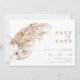 Schöne böhmische Aquarellkarte mit Blumenmuster Save the Date mit Pampas Gras, Obstgärten und einer bunten Rose.