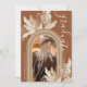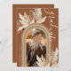 Rustikale Böhmische Graduiertenfeier mit Terrakotta-Hintergrund mit Regenbogenarmatur, Foto des Graduiertengrafen, wasserfarbene, trockene Palmen-Blätter, Pampas-Gras und eine elegante Textvorlage, die leicht zu personalisieren ist.