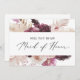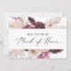 Diese boho Pampas Gras Trauzeugin-Karte ist ideal für eine Hochzeit im Sommer. Das Blumenmuster in Aquarellfarben ist mit böhmischen bordeauxroten und rot-rosa Blume mit Spitzen aus neutralem Pampasgras und goldgetrockneten Palmen-Blätter gestaltet. Passen Sie die Karte mit dem Namen der Braut und der Trauzeugin an. Personalisieren Sie die Rückseite der Karte mit einer personalisierten Meldung.