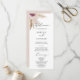 Dieses Hochzeitsprogramm für Boho Pampas ist perfekt für eine Hochzeit im Sommer. Das Blumenmuster in Aquarellfarben ist mit böhmischen bordeauxroten und rot-rosa Blume mit Spitzen aus neutralem Pampasgras und goldgetrockneten Palmen-Blätter gestaltet. Geben Sie den Namen der Braut und des Bräutigams, das Datum und den Ort der Hochzeit, Dankeschön-Nachricht, Dienstordnung, Brautparty und ein optionales "in Loving Memorial" ein.