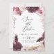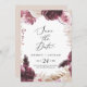 Diese boho Pampas Gras Hochzeit speichern Sie das Datum Ankündigung Karte ist perfekt für eine Sommerhochzeit. Das Blumenmuster in Aquarellfarben ist mit böhmischen bordeauxroten und rot-rosa Blume mit Spitzen aus neutralem Pampasgras und goldgetrockneten Palmen-Blätter gestaltet.