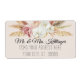 "Boho Pampas Palm Neutral Blush Bloral Greenery Wedding Mailing Address oder Return Address Label." Der rustikale Boho Strand ist in einem neutralen Erdton gehalten, der handbemalte Boho Kranz mit bräunlichem und braunem Pampasgras, goldfarbene Blätter mit Ventilatorpalmen, Rose mit Rosa und Orchideen. Hergestellt von Audrey Jeanne Roberts, einem international renommierten lizenzierten Künstler und Designer. Urheberrecht.