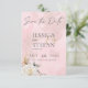 Dieses Design besteht aus rosa und weiß rosa Rosen und einem hellbeigen Pampashalrahmen mit einer weichen, rot-rosa Wasserfarbe und einem subtilen Glitzer-Hintergrund. Diese Karte ist Teil der Boho Pampas & Pink Roses Wedding Suite Collection, die von Simply Farmhouse Press kreiert wurde.