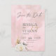 Dieses Design besteht aus rosa und weiß rosa Rosen und einem hellbeigen Pampashalrahmen mit einer weichen, rot-rosa Wasserfarbe und einem subtilen Glitzer-Hintergrund. Diese Karte ist Teil der Boho Pampas & Pink Roses Wedding Suite Collection, die von Simply Farmhouse Press kreiert wurde.