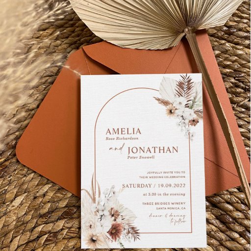Boho Hochzeit danke Ihnen Postkarte mit Pampas Terracotta Blume. MYLA-Sammlung