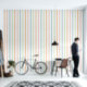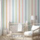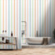 Boho pastellfarbene Retro gestreifte Tapete mit vertikalen Streifen.