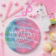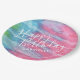 Krawatte-Farbdesign auf personalisierten Tellern für eine Geburtstagsparty, mit einer einzigartigen Stoffstruktur für ein authentisches Boho-Shirt-Farbkonzept, in trendigem Rosa und Aqua-Farbschema. Besuchen Sie den Designer-Shop für Papiertraube Zazzle, um die Dekoration des Party zu koordinieren.