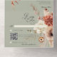 Boho Peach & Rust Floral & Feather Green QR Code All In One Einladung