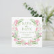 Genießen Sie klassische Eleganz mit unserer botanisch-thematischen Einladung zum rett-the-date Foto. Diese raffinierte Einladung erweckt das Wesen des rustikalen Charmes, der mit einem faszinierenden Kranz aus rosa Blume geschmückt ist. Set den perfekten Ton für Ihre Feier mit diesem raffinierten und stilvollen Design.