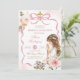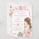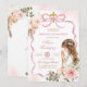 Boho Pink Schleife Pampas Gras Erste Heilige Kommunion Einladung, Mädchen kniet Primera Comunión Invitación, Spanische Heilige Kommunion
