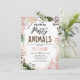 Sweet boho floral safari themed birthday invitation for a little girl featuring a pink cheetah print and black pattern, green and brown tropical foliage and blush colored roses. This calling all party animals boho inspired first birthday invitation is a cute way to set the scene for a girl's safari first birthday party but can be used for any age.