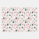 Boho Pink und grüne Weihnachtsbäume auf diesen drei Blättern des Feiertages saisonale Packpapier.