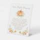 Feiern Sie mit Ihren Freunden und Ihrer Familie Ihr nächstes Baby, um die Freude an der Ankunft Ihres kleinen Hauses mit diesem Baby Dusche Spätdampf Spätdüster-Podest-Schild mit einem Aquarellkürbis und Herbstblätterung zu teilen.