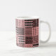 Diese Tasse hat ein Boho-Design von Quadraten mit Mustern in jedem in schwarz und rosa.