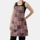 Diese Schürze hat ein Boho-Design von Quadraten mit Mustern in jedem in schwarz und rosa.