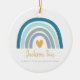 Dieses bezaubernde Boho-Regenbogenschmuck eignet sich perfekt zum Gedenken an das erste Weihnachtsfest des Babys. Das Design ist in den Farben Blau, Aqua und Gold gehalten. Das Ornament wird mit Ihren Texten-, Schriftart- und Schriftart-Farben personalisiert.
