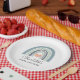 Moderne, zarte, pastellfarbene Teller mit blauen Regenbogenfarben, schlicht und süß, mit einem kleinen rosa Herzzentrum und blauen Farbtönen. Ein perfekter Stil für jede Gender Baby Dusche. Ein wunderbarer und skurriler Stil. Die vollständige Auflistung der entsprechenden Produkte für dieses Design finden Sie unter: https://www.zazzle.com/collections/boho_watercolor_rainbow_boy_blue_baby_shower-119057643899551113