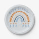 Boho Rainbow Blue Kraft Boy Baby Shower Pappteller
