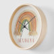 Diese niedliche Bohwanduhr für Mädchenzimmer/Kinderzimmer mit dem Namen auf einem cremefarbenen Hintergrund mit Regenbogenmakrame/Seil. Personalisieren Sie es für Ihre Bedürfnisse. In meinem Geschäft finden Sie passende Produkte.