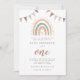 Eine moderne und schicke Einladung zum ersten Geburtstag mit Regenbogen und Banderitas-Design in Pastellfarben für ein boho fiesta Thema.
