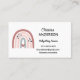 Diese elegante Babysitter-Visitenkarte besticht durch einen modernen boho-Regenbogen mit pastellfarbenen Herzakzenten in Blau und Rosa mit einem Regenbogenmuster im Hintergrund. Perfekt für Kleinkinderbetreuung, Haustiersitze oder Kinderbetreuung, ist es ein minimales und dennoch elegantes Design, das sich durch Stil auszeichnet.