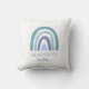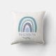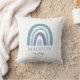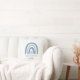 Das Kopfkissen des Kopfkissens ist schlicht und charmant. In der Mitte befindet sich ein halbkreisförmiger Regenbogen, der aus fünf gekrümmten Bändern in Blau- und aquamarinen Farbtönen besteht. Unterhalb des Regenbogens wird der personalisierte Name" in einem weichen, kursiven Schriftart in einer aquamarinen Farbe geschrieben. Rechts neben dem Namen befindet sich ein kleiner Blätter im selben aquamarinen Schatten, der dem Design eine zarte Touch verleiht. Das Gesamtbild ist schlicht, modern und personalisiert, mit einer beruhigenden Farbpalette.