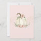 "Boho Rainbow Pumpkin Pink Floral Gold Sparkle Girl Baby Shower Einladung." Ein goldener Glitzer, ein funkelnder Tinkel fegt durch die blass staubigen rosa Wildblumen, die einen weißen Kürbis schmücken. Hinter dem Bild befindet sich ein pastellfarbener BOHO-Regenbogen aus staubigen Rose in Rosa, Blau und Senfgelb, für eine moderne Babydusche oder ein Babyduschthema. Auf der Rückseite ist hellrosa Untergrund mit dem Kürbis, den Blume und den goldenen Stern-Wirbel. Gemalt in Aquarell von international lizenzierter Künstlerin und Designerin, Audrey Jeanne Roberts, Copyright.