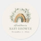 Boho Rainbow Classic Round Sticker. Eine Einführung in unsere bezaubernde Boho Rainbow Baby Shower Collection, in der skurrile, handbemalte Wasserfarbenregen in Erdtönen von Salbei, Terrakotta und Bräunungstanz neben trendigen Eukalyptus-Botanicals in einer ruhigen beige Kulisse mit einem komplementären Muster auf der Rückseite in tiefer Weise stattfinden. Diese Sammlung vereint eine rustikale, böhmische Chic-Ästhetik und umfasst alles, was Sie für ein unvergessliches Fest benötigen, von exquisiten Einladungen und Gehwegskarten bis hin zu einem charmanten Begrüßungszeichen, reizvollen Geschenketiketten, Gefallen-Taschen und sogar der Koordination von Tellern, Bechern und Servietten. Lass dieses Kollektion Set die Bühne für eine fröhliche und stilvolle Ansammlung, um die bevorstehende Ankunft deines Kleinen zu feiern.