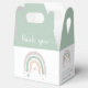 Boho Baby Dusche Gefälligkeitsbox mit "Danke" in einem stilvollen weißen Drehbuch mit Wimpern und einer niedlichen abstrakten Wasserfarbe eines Salbei grün, orange und Lavendel Regenbogen mit Herzen. Personalisieren Sie sich mit dem Namen der Mutter und dem Duschdatum.