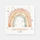 Feiern Sie die zukünftige Mutter mit dieser charmanten Boho Rainbow Baby Duwer Serviette! Mit einem handbemalten, pastellfarbenen Regenbogen in Aquarelltönen und kleinen Herzen ist dieses Design perfekt für eine gemütliche und stilvolle Ansammlung. Ideal für den Tisch bei Babyduschen mit einem warmen, kahlem Ambiente. Verfügbar mit passenden Produkten.