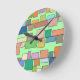 Diese Wanduhr hat ein hochmodernes Design von Rechtecken, die an horizontalen Linien in verschiedenen Größen und Bohfarben befestigt sind.
