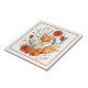 Diese hübsche Keramik Kachel ist mit einem roten roten Fuchs im bohenhaften Stil, umgeben von rostigen orangefarbenen Blume und aquamarinen blauen Blätter. Das Bild wird auf einem weißen Hintergrund platziert und mit einer passenden dünnen Randlinie gerahmt.
