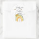 Das ist ein Babyduschaufkleber mit einem bohenhaften Regenbogen für Sie. Sie können den Text personalisieren, indem Sie auf den Knopf "Personalisieren" klicken und die Farbe ändern, indem Sie auf den Knopf "Bearbeiten mit dem Designwerkzeug" klicken. Guten Tag, mein Freund!
