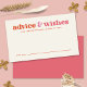 Erstellen Sie mit diesen Boho Retro Abschluss Advice and Wish Cards einen unvergesslichen Sake für den Absolventen. Diese Karten können in der Ankündigung oder Party Einladung Ihres Abschlusses enthalten sein oder im Party zur Verfügung stehen, damit Sie sie ausfüllen können. Diese Advice Cards verfügen über eine Retro-Vintage Typografie und eine rosa und orangefarbene Farbpalette. Die Rückseite ist leer, um zusätzlichen Platz zum Schreiben zu haben, oder Sie können die Rückseite anpassen, indem Sie auf die Schaltfläche "Edit Using Design Tool" klicken.