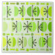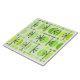 Ein Vintages, modernes Muster mit geometrischen Schalen, Formen, Punkten und Linien, sowie Sputnik-Sternexplosionen. Halbe Muscheln mit Sputnik-Sternexplosionen im Atomzeitalter Retro. Hellgrün, gelb-grün, Tennisball gelb.