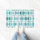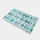 Ein Vintages, modernes Muster mit geometrischen Schalen, Formen, Punkten und Linien. Blau-Grün- und Weiß-Farbtöne.