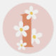 Boho Retro Daisy 1. Groovy Birthday Runder Aufkleber