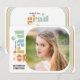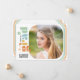 Diese mehrfarbige Foto Abschluss-Ankündigungskarte bietet ein Retro-Design mit Boho-Farben. Das quadratische Foto ist mit abgerundeten Ecken versehen. Auf der Rückseite finden Sie benutzerdefinierten Text, um den Namen, die Schule und die Pläne für die Zukunft des Absolventen hinzuzufügen.