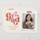 Feiern Sie den Absolventen stilvoll mit dieser kühnen, lustigen und Retro 2-Foto Abschluss Ankündigung. Diese Karte ist mit einer Vintagen Retro-Typografie und einer rosa und orangefarbenen Farbpalette ausgestattet. Ein polaroidales Foto trägt zur nostalgischen und boho Atmosphäre dieses Designs bei. Auf der Rückseite finden Sie ein zweites Foto und viel Platz für Ihren zusätzlichen Text. Teilen Sie die Errungenschaften und Pläne Ihres Absolventen mit Freunden und Lieben. Ein lustiges, kühnes und farbenfrohes Design zum Feiern Ihres Absolventen.