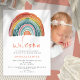 Boho Retro Kolored Rainbow Welcome Foto Birth Ankündigung