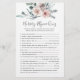 Die Boho Rose themed Baby Dusche Kinderzimmer Rhyme Quiz Spielkarte bietet eine Aquarell rosa Rosa Illustration und Aquarell Grüne eucalyptus Garland und elegante handgeschriebene Stil Schriftart.